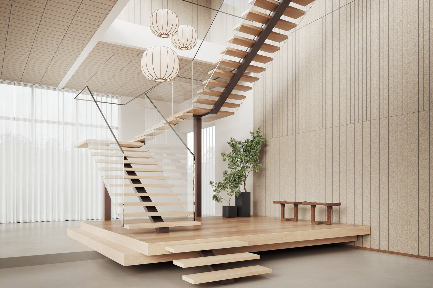 Vægbeklædninger i træuld tilbyder en skandinavisk-inspireret æstetik, der er både minimalistisk og funktionel. Fremstillet af træfibre blandet med cement, leverer de fremragende akustik og brandsikkerhed. Deres robuste tekstur og naturlige farver giver en simpel, men sofistikeret touch til ethvert rum, samtidig med at de forbedrer akustikken og bidrager til et sundere indeklima.
