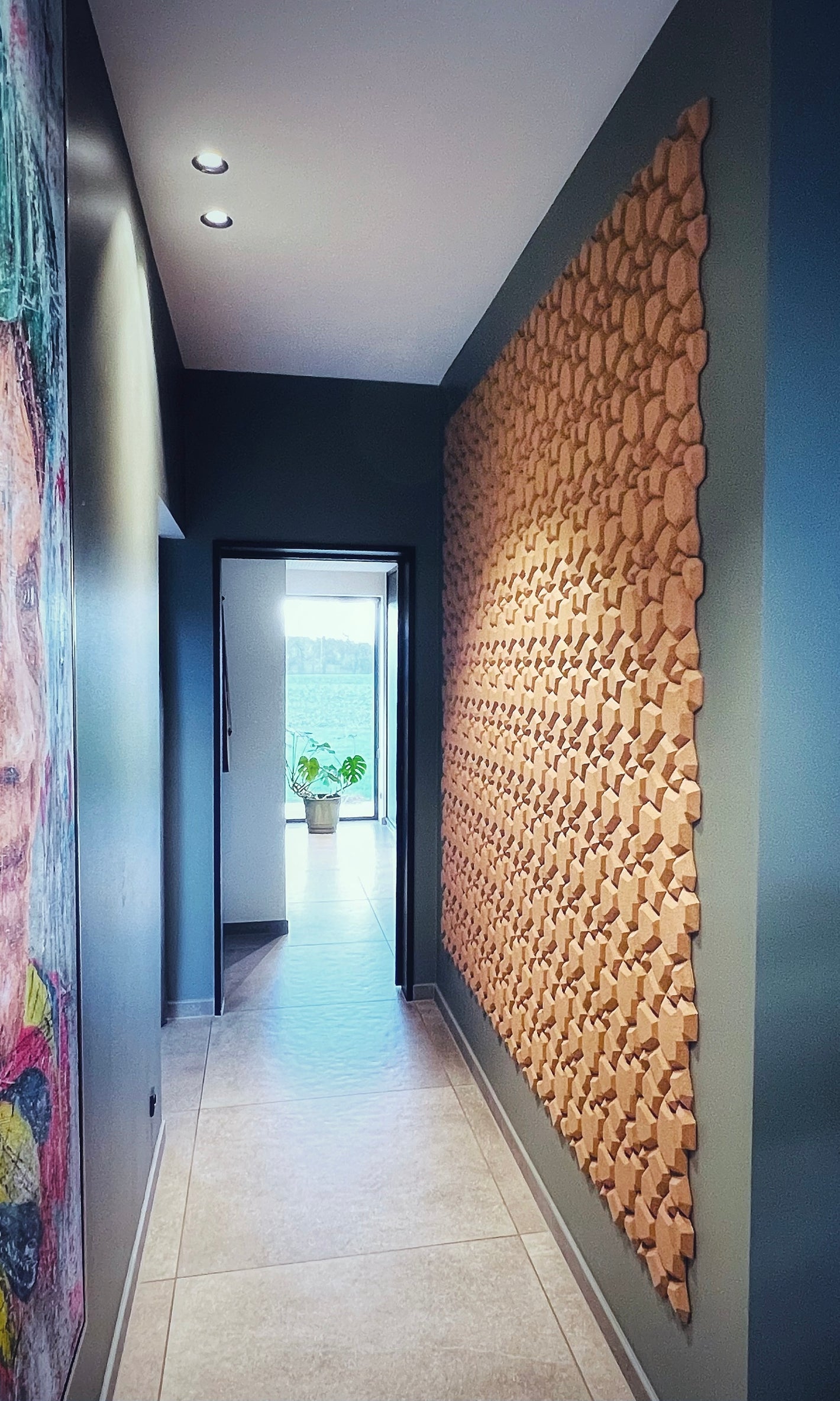 Kork er kendt for sin holdbarhed og miljøvenlige egenskaber. Det er et fantastisk alternativ til træ som vægbeklædning, da det ikke kun har fremragende akustiske egenskaber, men også er naturligt modstandsdygtigt over for mug og skimmel. Kork vægbeklædninger er lette at installere og giver en varm og indbydende atmosfære til ethvert rum - ideelle for dem, der ønsker et naturligt udseende med miljøvenlige fordele.