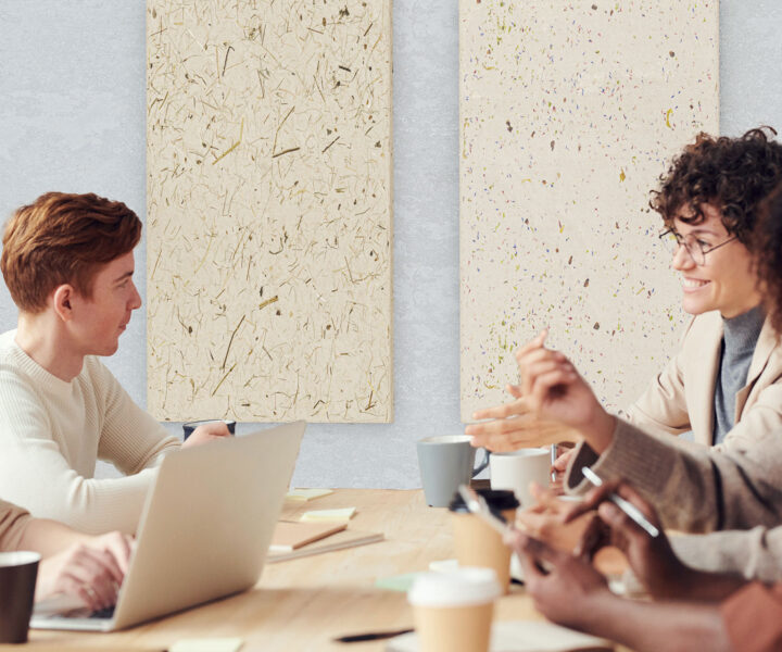 Organoid® billedabsorberne er lavet af genbrugte plastikflasker i upcyclingsprocessen. De færdiggøres derefter kærligt i et integreret værksted med de klimaneutralt producerede overflader af Organoid på naturlig hørfleece. De er genanvendelige, allergivenlige, ublegede, åndbare og indeholder ingen kemiske tilsætningsstoffer. De er certificeret i henhold til Standard 100 af OEKO-TEX® og forbedrer efterklangstiden: Alpha-w op til 0,8. De bæredygtige akustiske elementer giver folk på kontoret, i restauranter eller derhjemme et sundere og mere behageligt rumklima, fremmer produktiviteten eller øger blot afslapningen.