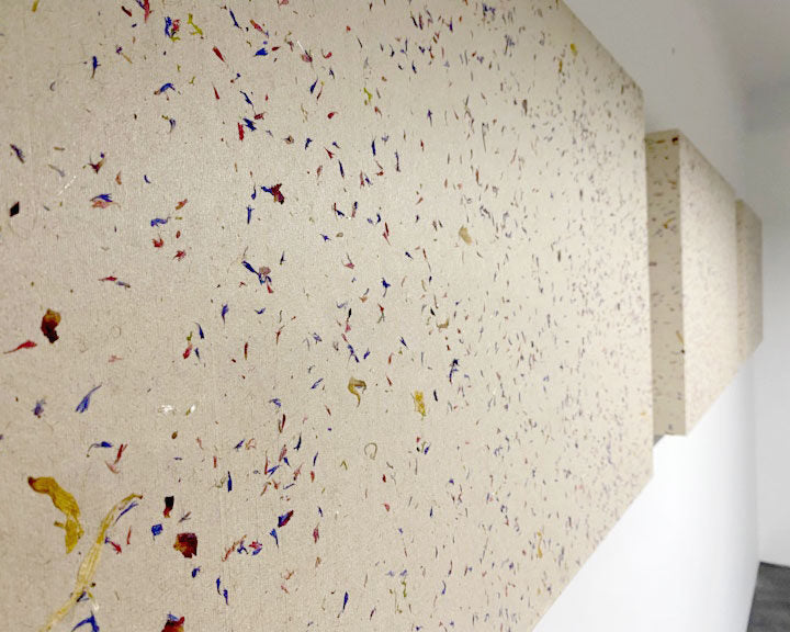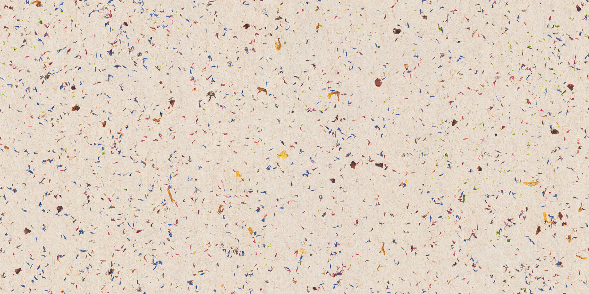 Integrer farver på en subtil måde: rige, farverige blomsterblade, løst spredt på åndbar hørfleece, skaber denne elegante overflade. De farverige blomsterblade giver en munter farvekontrast på den naturlige bagside. Dette gør overfladen særdeles velegnet til store applikationer.